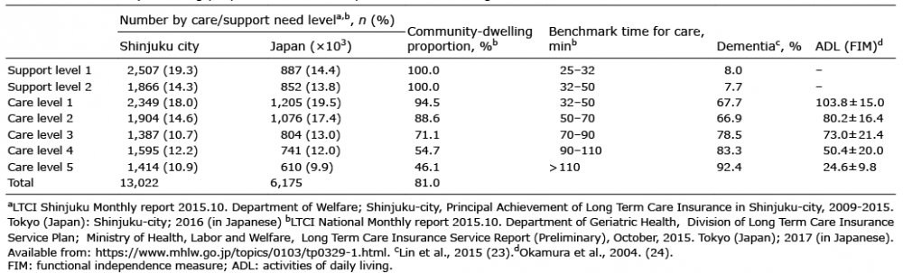 Table I. Community-dwelling proportion of care recipients in each care grade